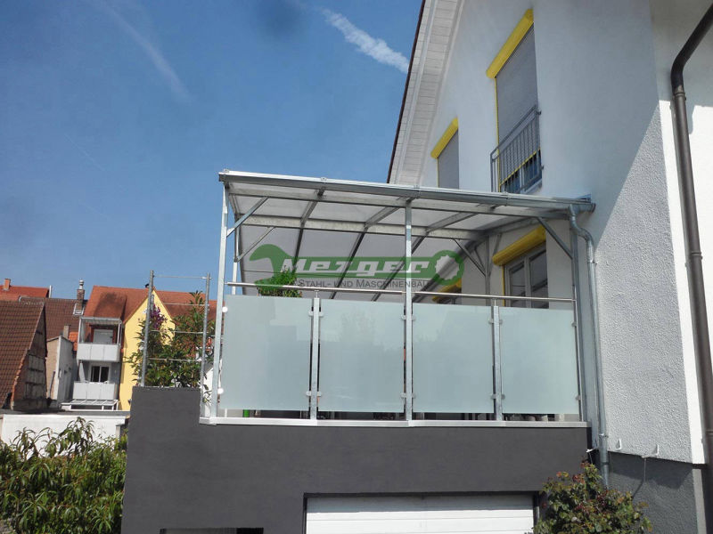 Überdachung Balkon aus Doppelstegplatten mit Geländer aus Glas